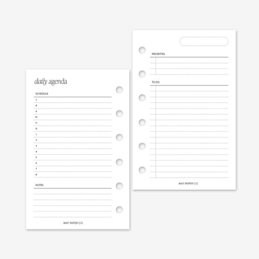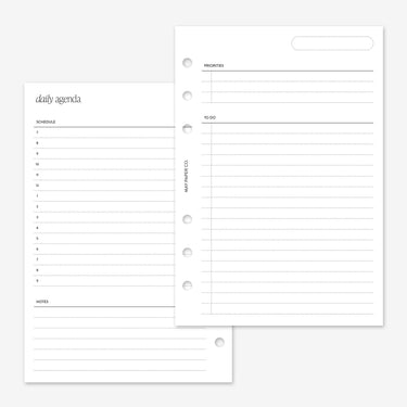 Bring structure and calm to your day with our A5 Day on Two Pages planner inserts. Thoughtfully designed to help you plan, prioritise, and stay productive, these daily pages make it easy to organise your schedule and tasks at a glance.