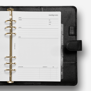 Keep track of your meeting minutes with our Meeting Notes Planner Insert.  Record the agenda of the meeting, write down notes and keep track of tasks to be actioned. Great for small businesses, professionals and project management.