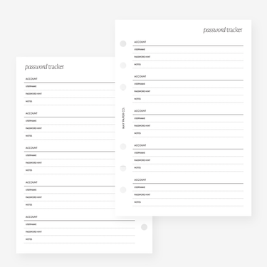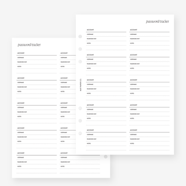 Password Tracker Planner Insert